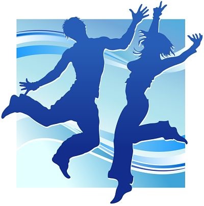 Dancing people, silhouette guy and girl on blue background, illustration